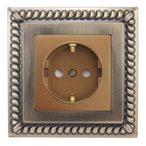 Shiny bronze teardrop frame and earthed socket with baby lock Azin 3898-5113 Part Electric