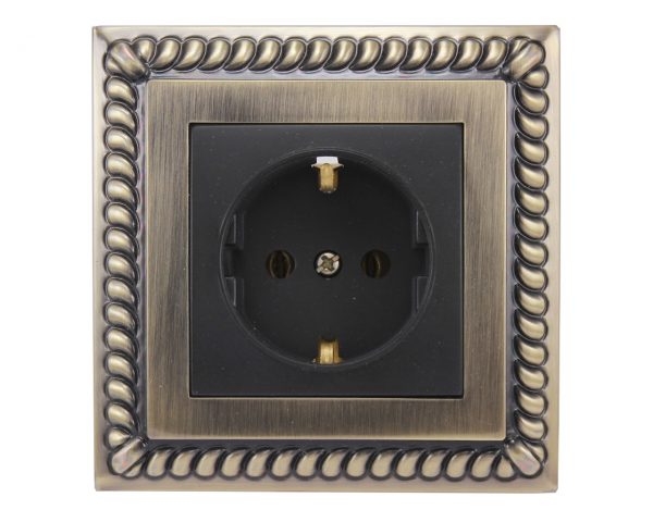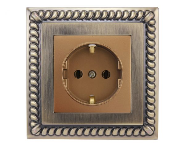 Shiny bronze teardrop frame and earthed socket with Azin polycarbonate core 3898-4022 Part Electric